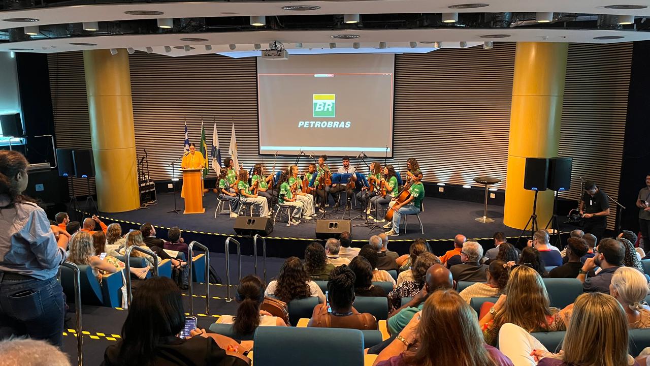 A participação integrou a cerimônia de assinatura simbólica dos novos projetos socioambientais apoiados pela empresa, reunindo convidados, representantes das iniciativas contempladas e funcionários da própria Petrobras.